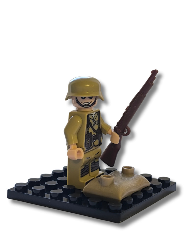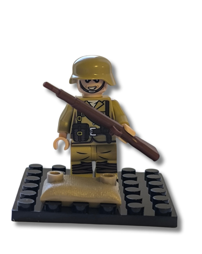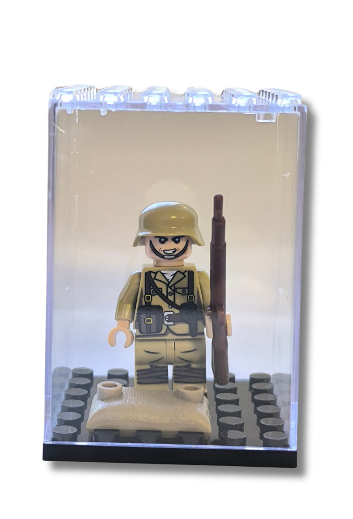 Katonai építőjáték figura műanyag vitrinben - világháborús német katona, Africa Corps