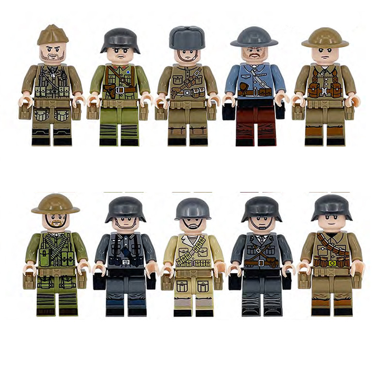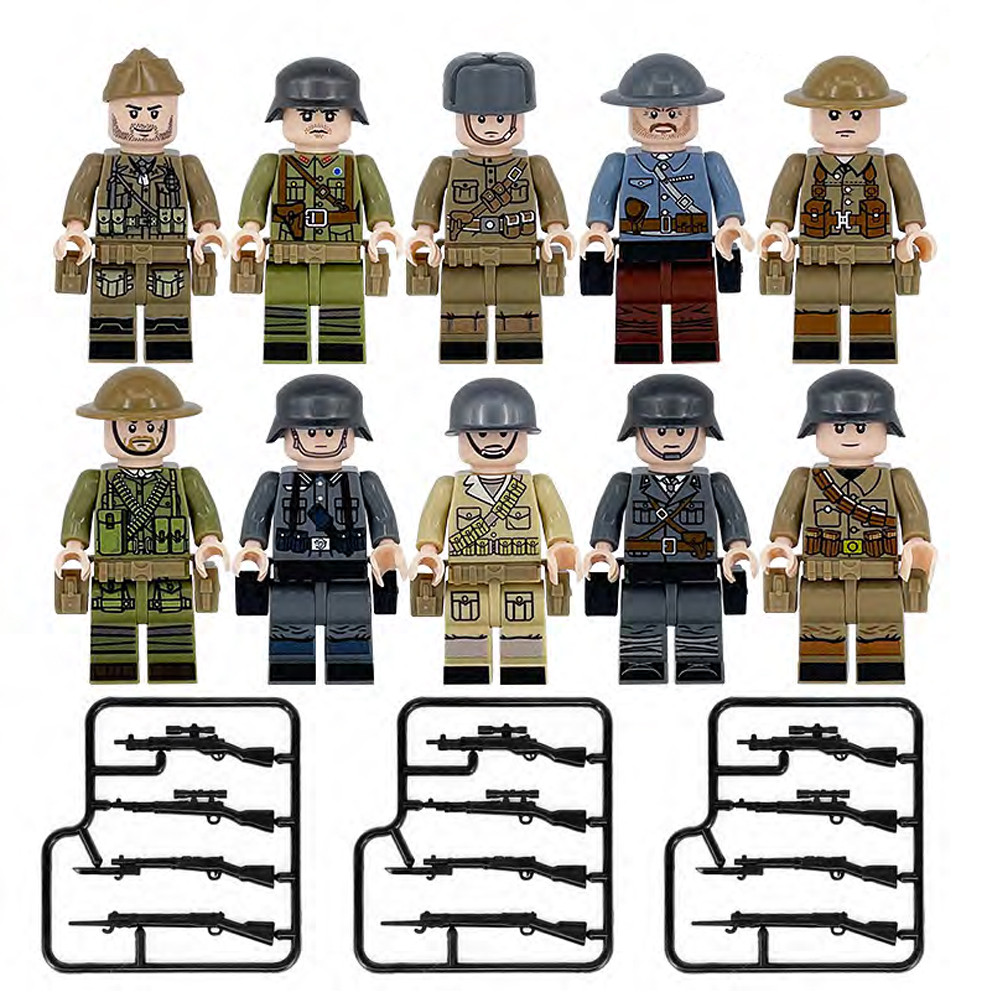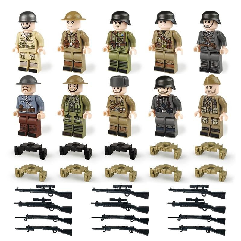 Katonai építőjáték figura szett - 10 db különböző második világháborús katonafigura számos kiegészítővel