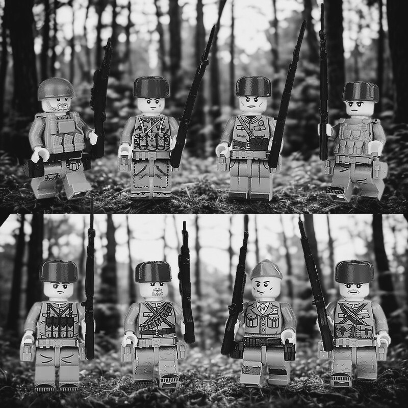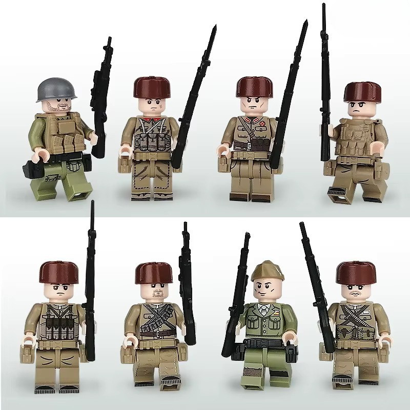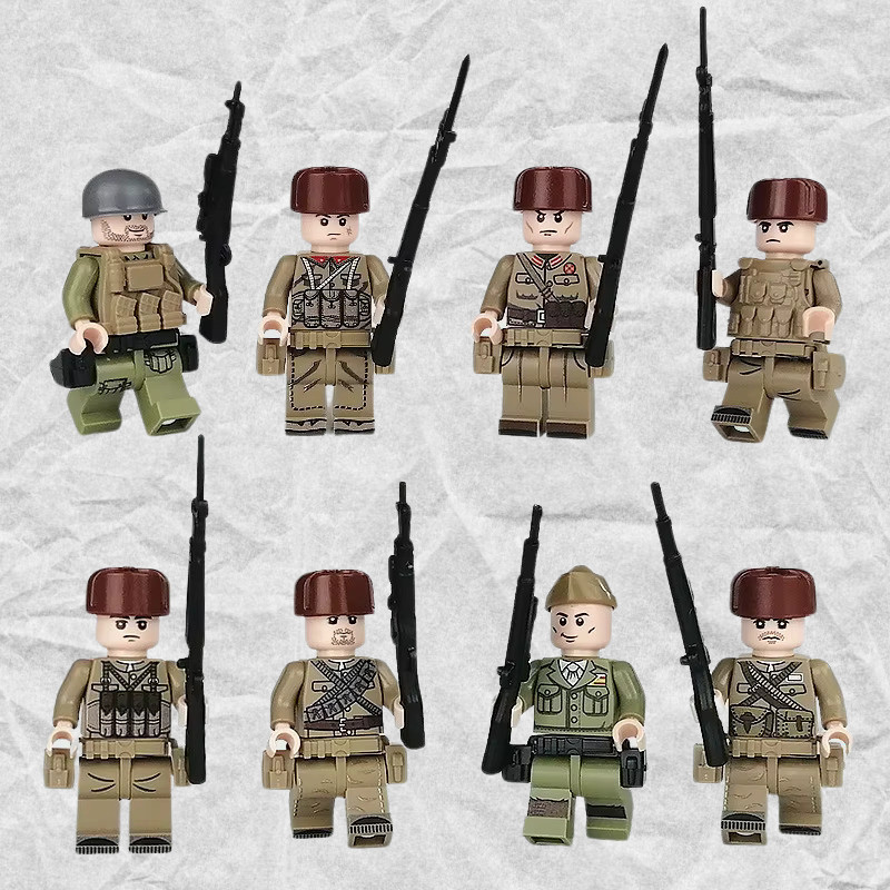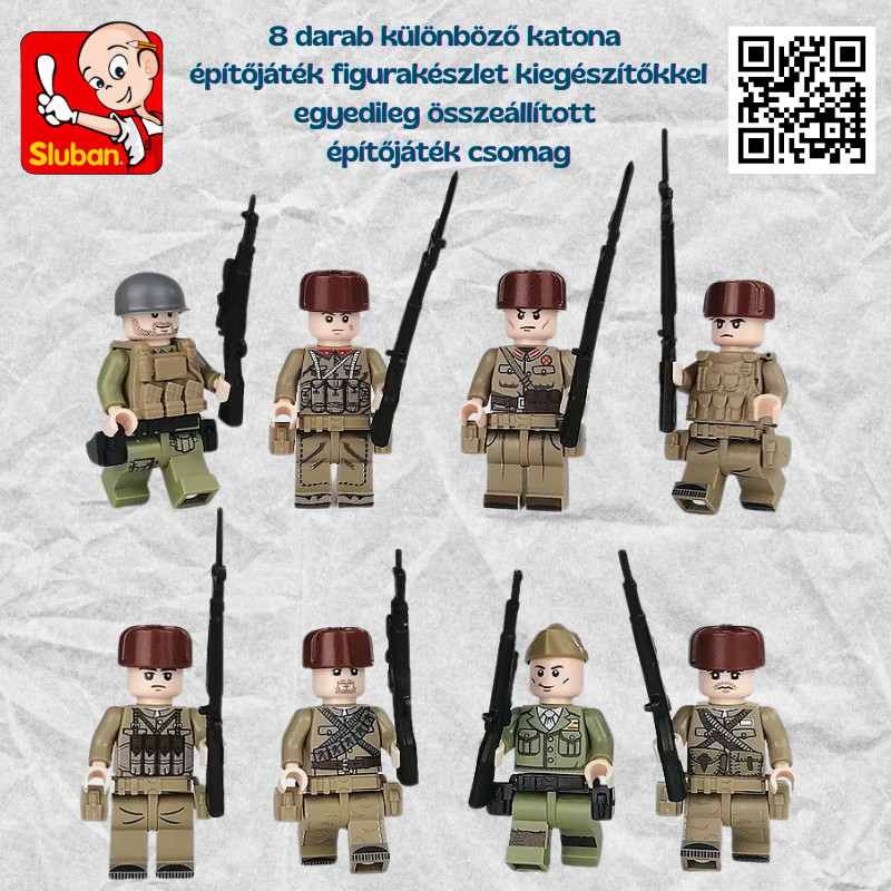 Katonai építőjáték figura szett - 8 db különböző katonafigura kiegészítőkkel