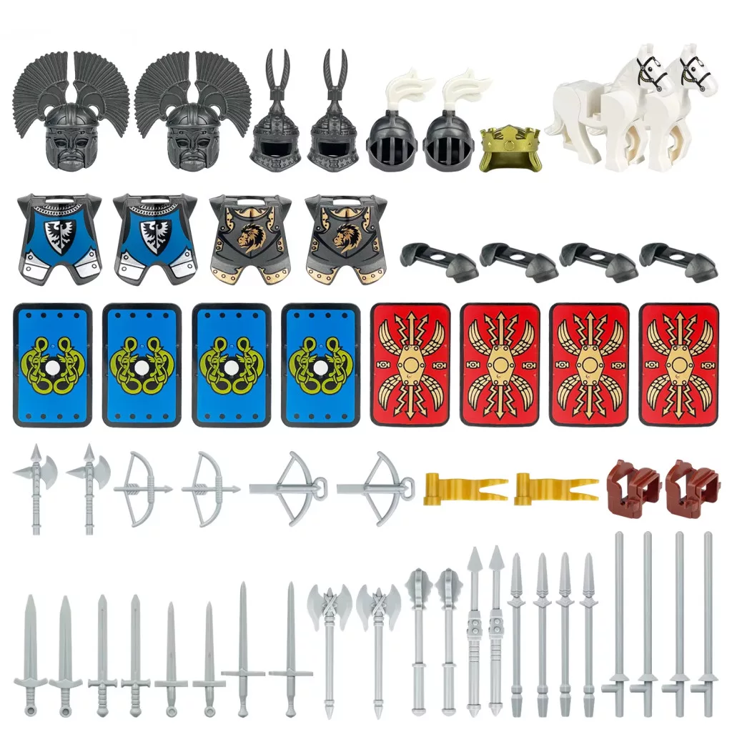 Katonai építőjáték kiegészítő szett - 57 darabos középkori lovagok kiegészítő csomag 2 lófigurával