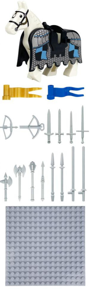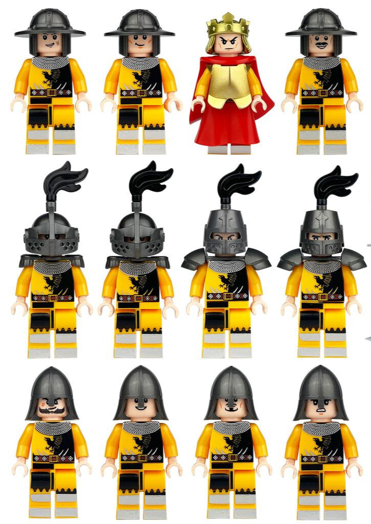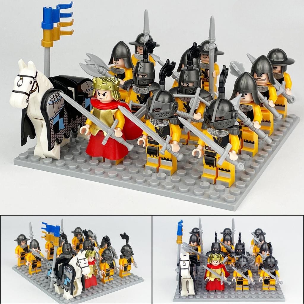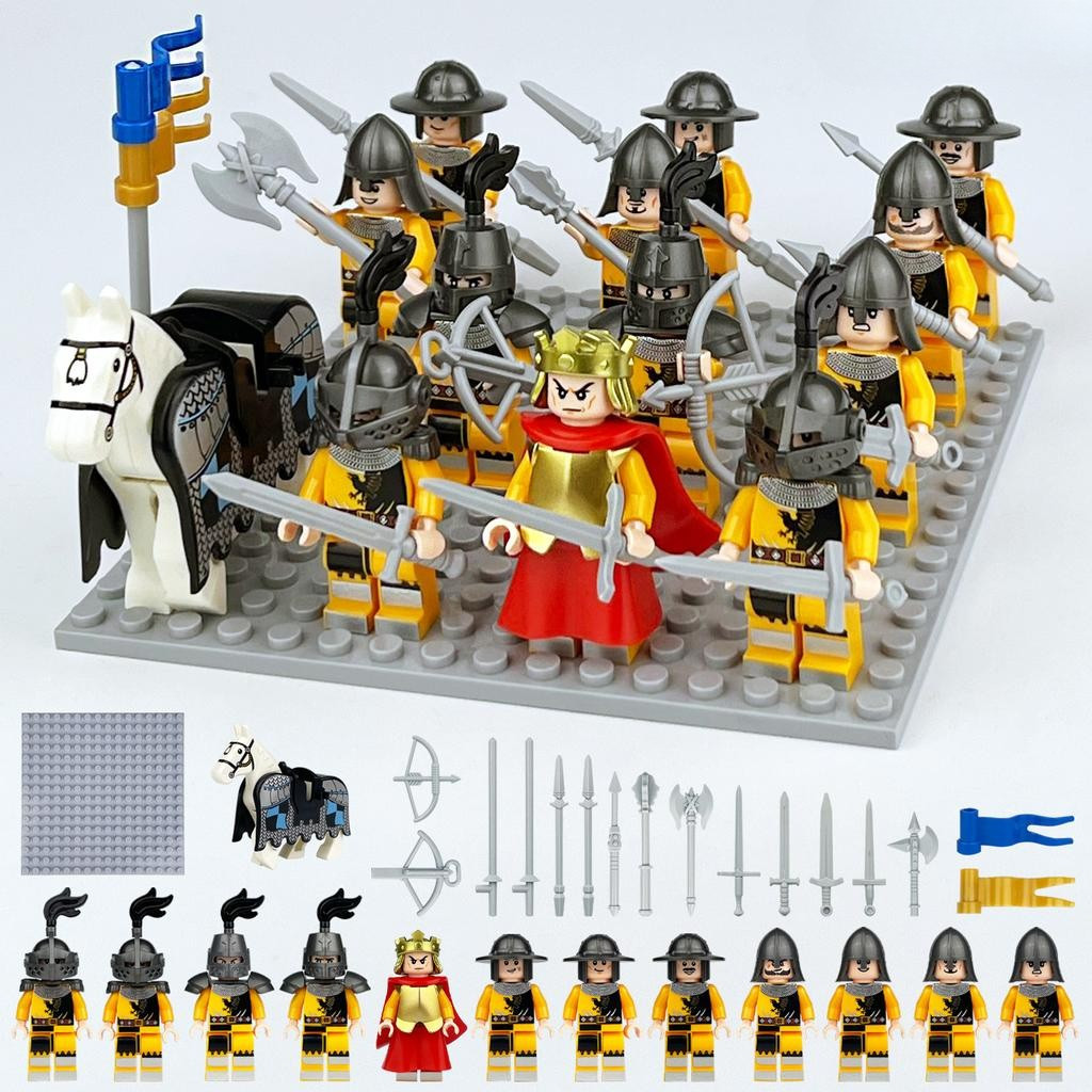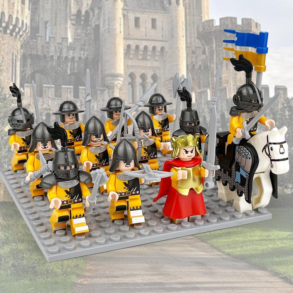 Középkori királyi testőrség építőjáték figura szett - 12 db különböző katonafigura számos kiegészítővel, alaplappal