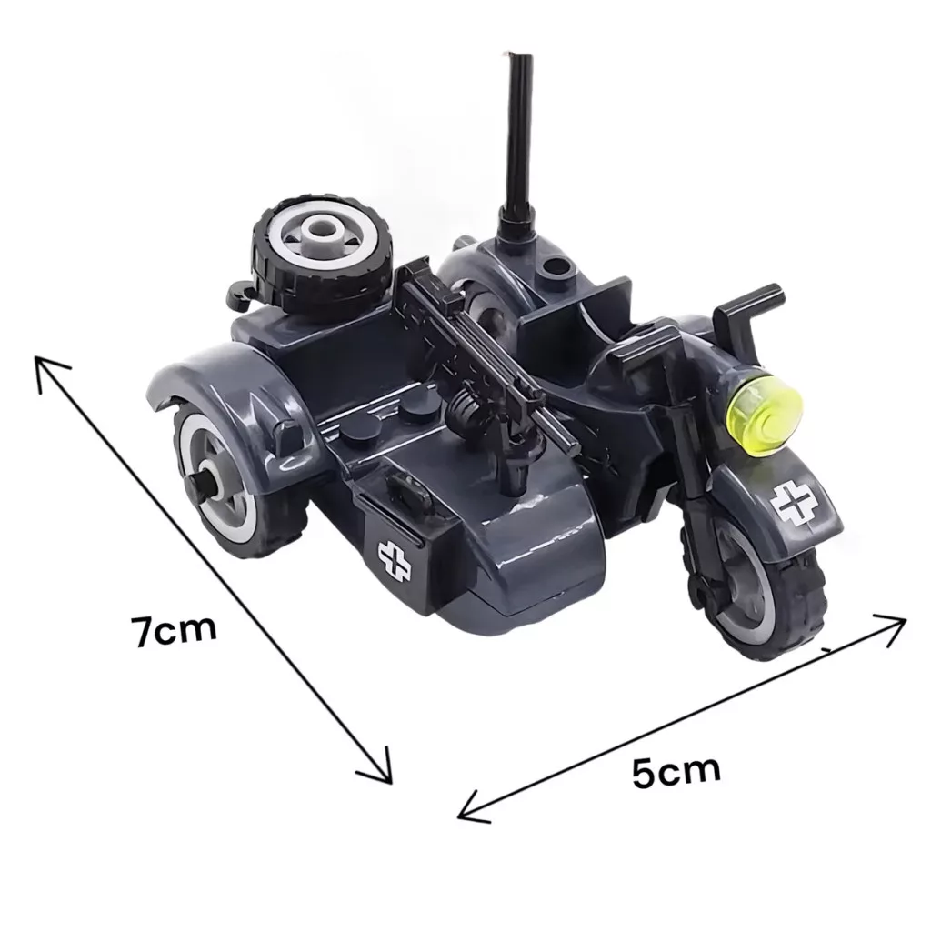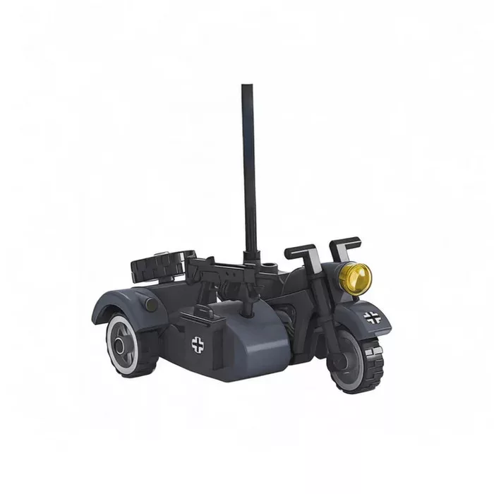Második világháborús német katonai oldalkocsis motorkerékpár építőjáték készlet