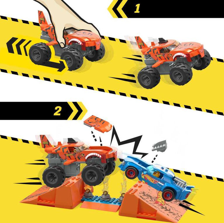 Mega Hot Wheels Monster Trucks - Tigris, cápa ütközeti készlet