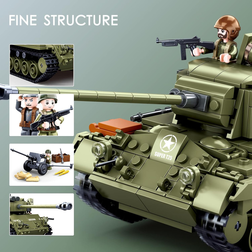 Sluban Army WWII - 2 az 1-ben M26 Pershing közepes harckocsi építőjáték készlet