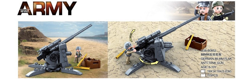 Sluban Army WWII - német 88 mm-es FLAK légvédelmi ágyú építőjáték készlet