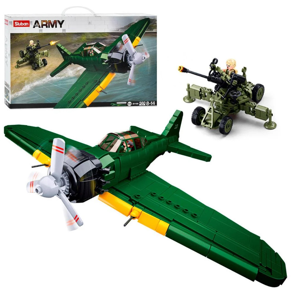 Sluban Army WWII - A6M Zero vadászrepülőgép és légvédelmi üteg építőjáték készlet