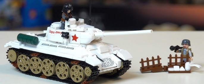 Sluban Army WWII - Budapest ostroma: fehér szovjet T34-85 harckocsi építőjáték készlet