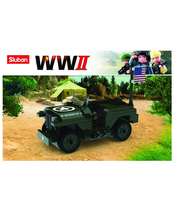 Sluban Army WWII - Egyedi, limitált kiadású második világháborús amerikai jeep építőjáték készlet