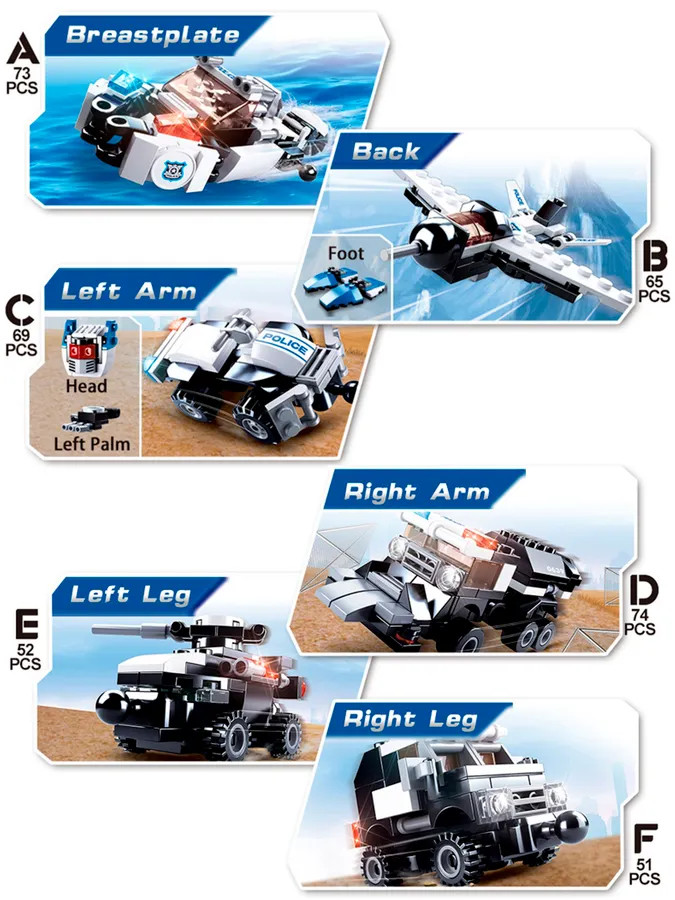 Sluban Builder Police - 6 into 1 robotharcos építőjáték készlet