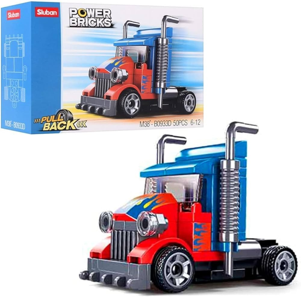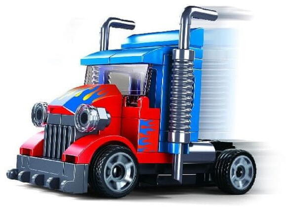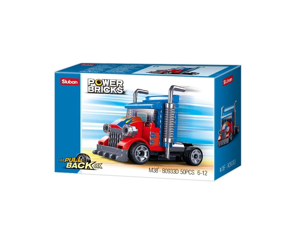 Sluban Power Bricks Pull Back - Hátrahúzható kis piros-kék vontató építőjáték készlet