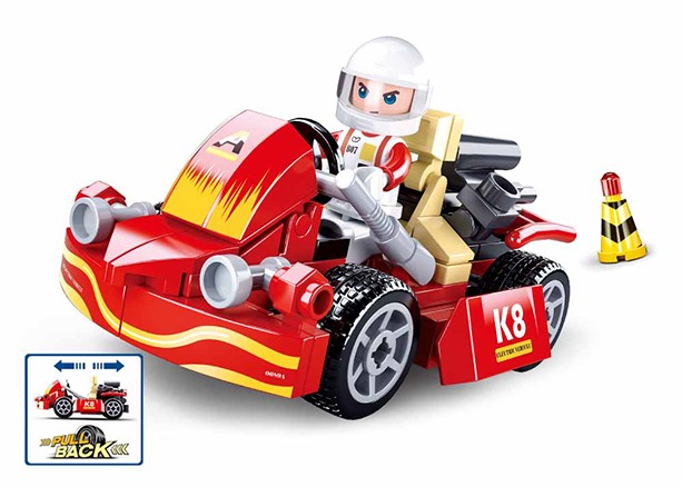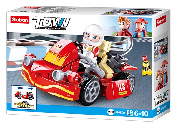 Sluban Town - Hátrahúzhatós piros versenyautó építőjáték készlet