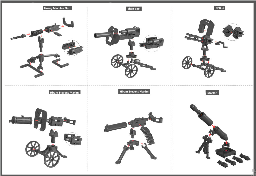 Sluban katonai építőjáték kiegészítő szett - 6 különböző gyalogsági tűzfegyver