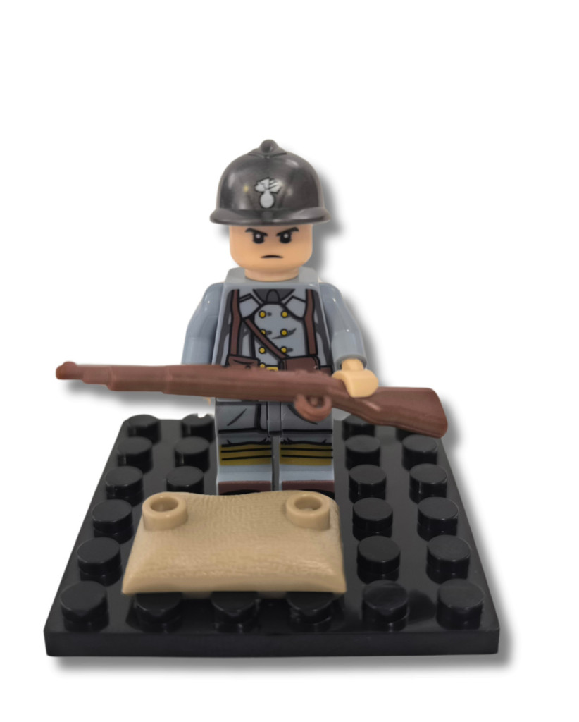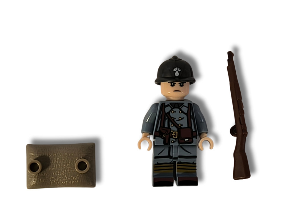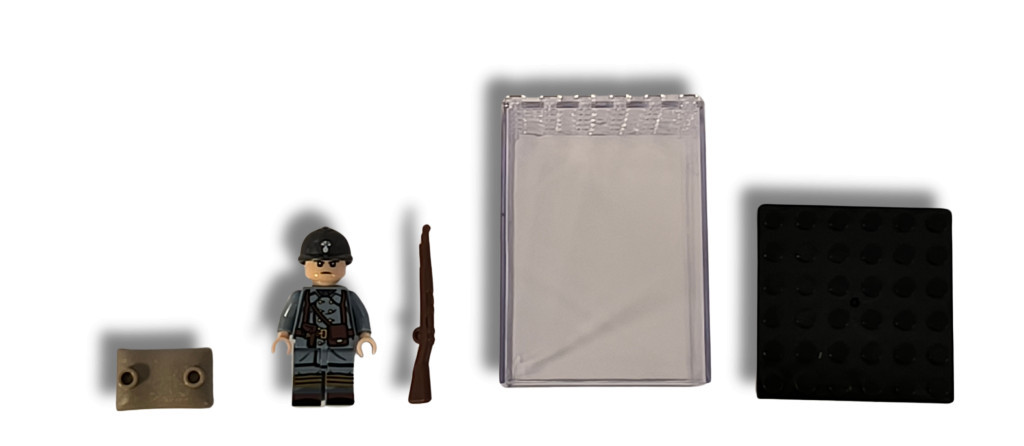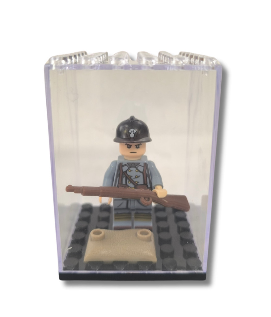 Katonai építőjáték figura műanyag vitrinben - világháborús francia katona