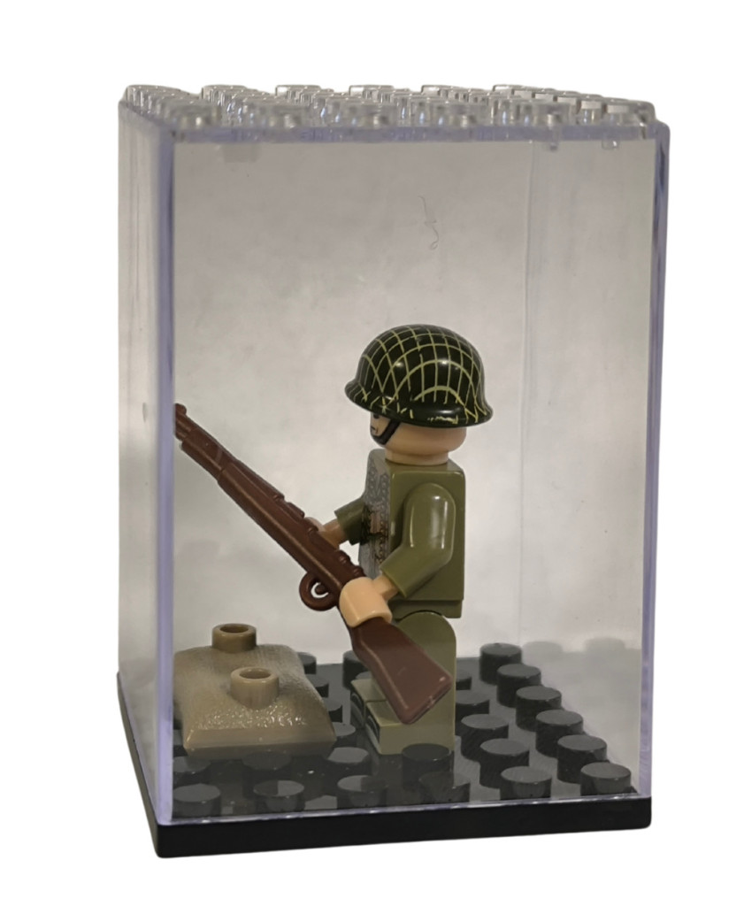 Katonai építőjáték figura műanyag vitrinben - világháborús amerikai katona