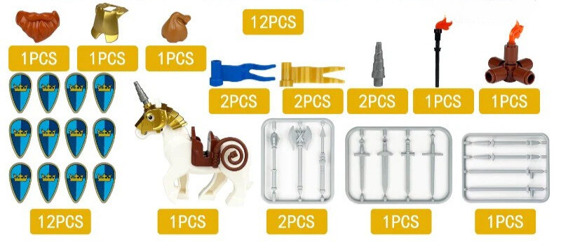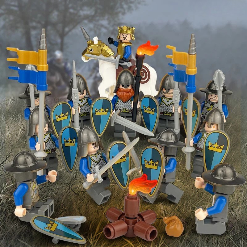 Középkori királyi testőrség építőjáték figura szett - 12 db különböző katonafigura számos kiegészítővel
